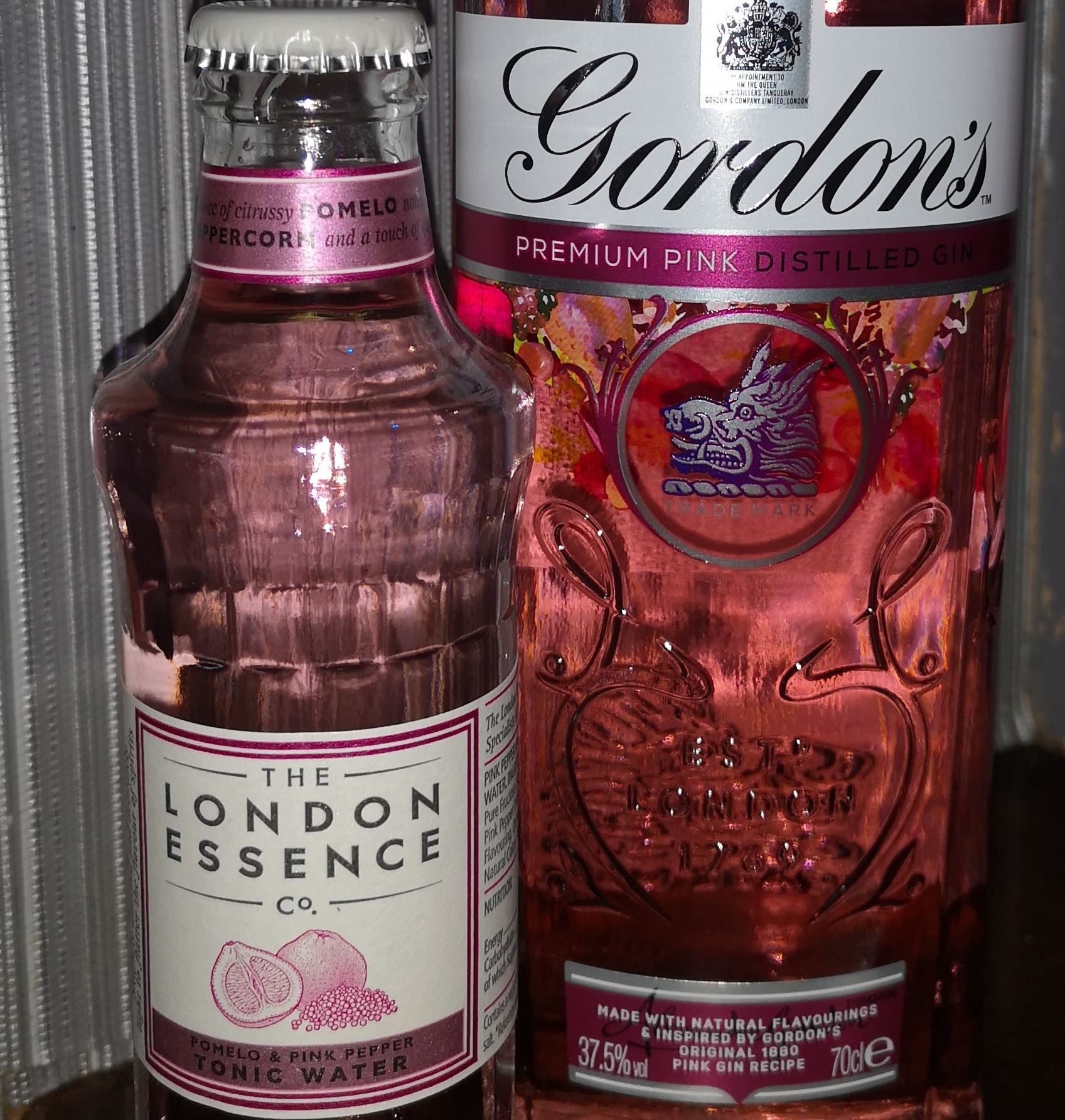 Gordons pink 70 cl + 10 x Mixed Flavours of London Esseence tonic + strawberries punnet